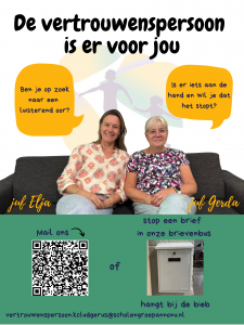 Zowel Gerda als Linda zijn via het algemene telefoonnummer van school te bereiken. Zij zijn ook per mail te benaderen: vertrouwenspersoon.kcludgerus@scholengroepannonu.nl